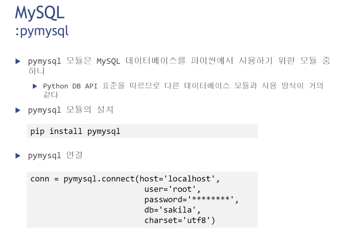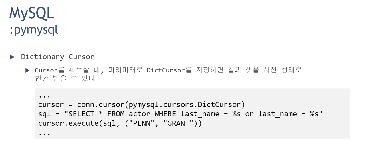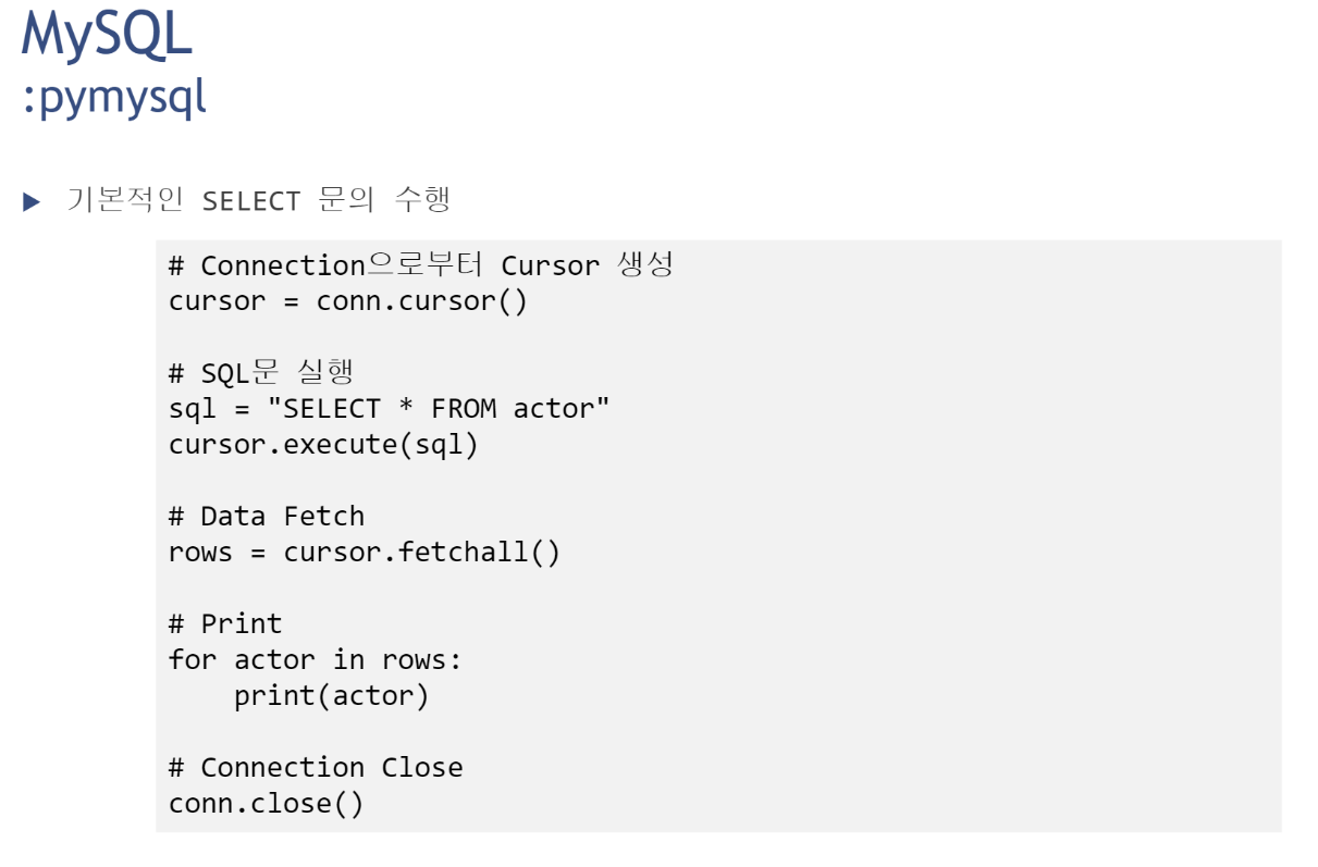 connect -> cursor -> query -> 데이터 처리