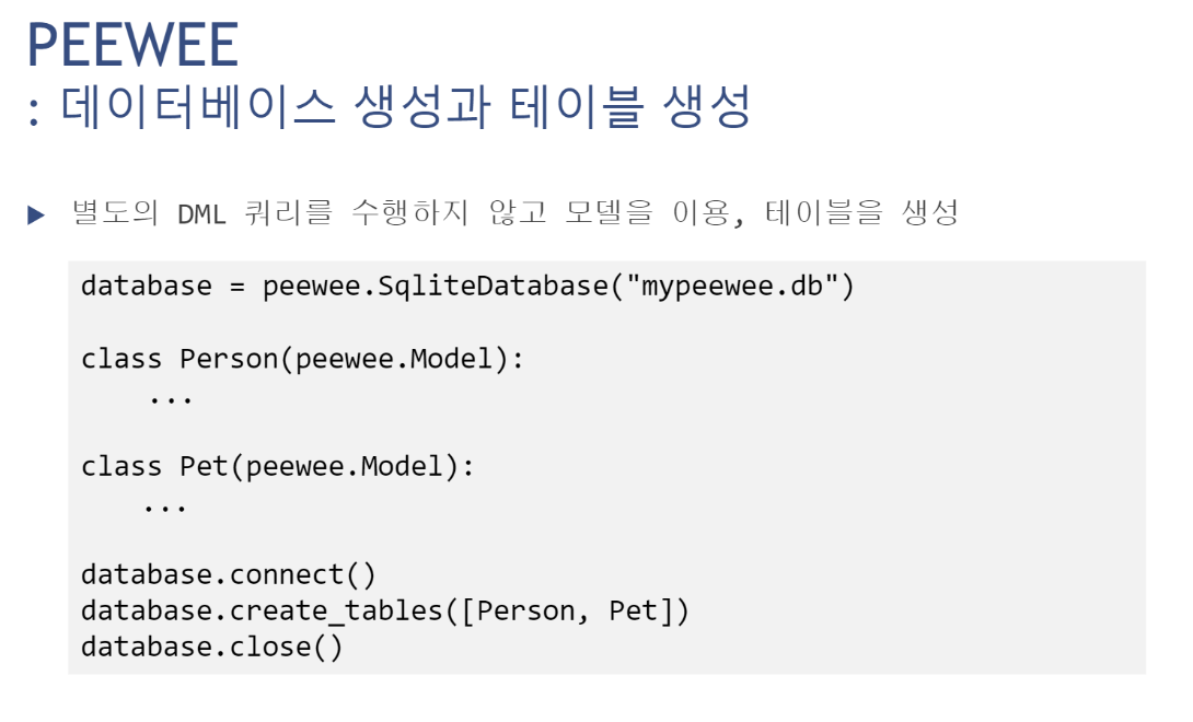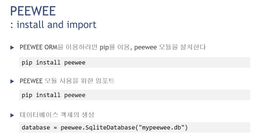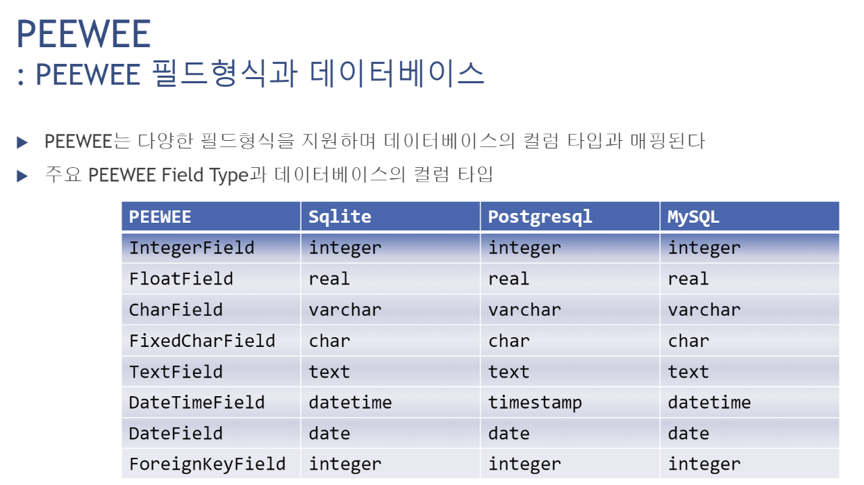 ORM(Object Relational Mapping) 객체 관계 매핑(PeeWee) 본문
